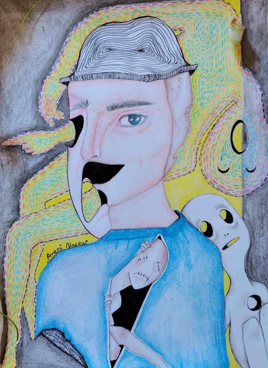 Technique: Colored pencils, ink, and markers on paper (50 × 70 cm)