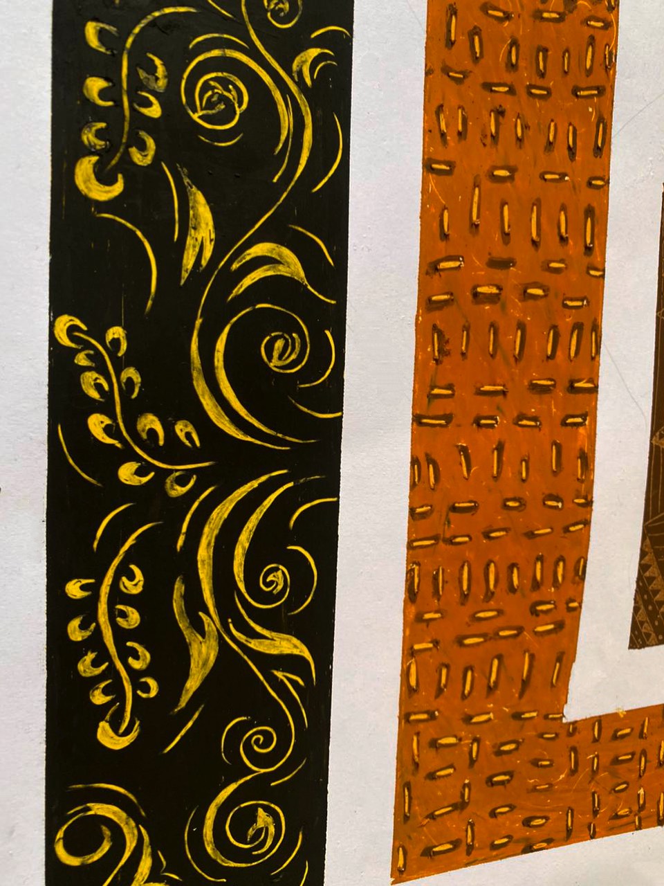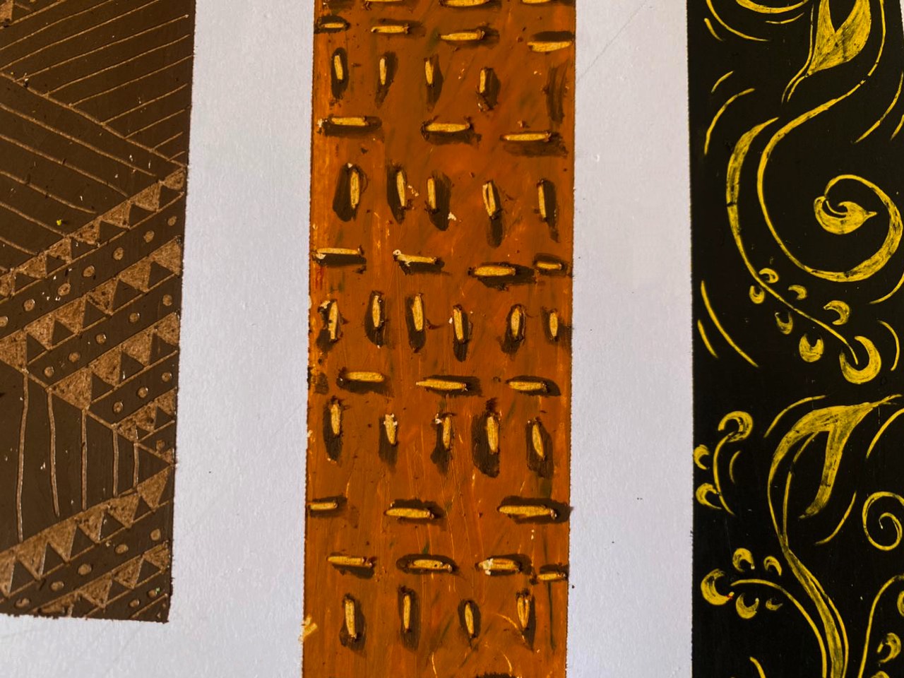 Hand-drawn geometric segmentation with intricate internal pattern work
