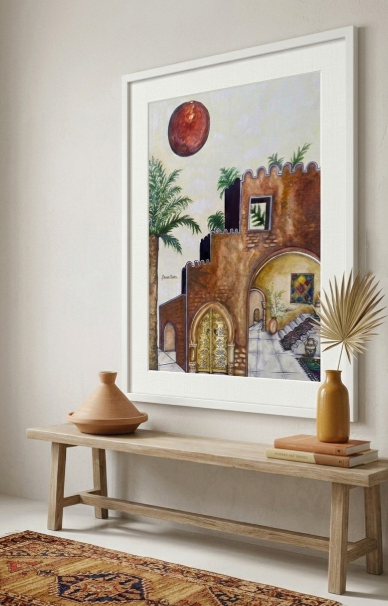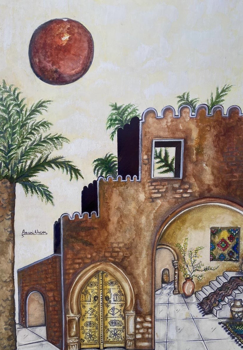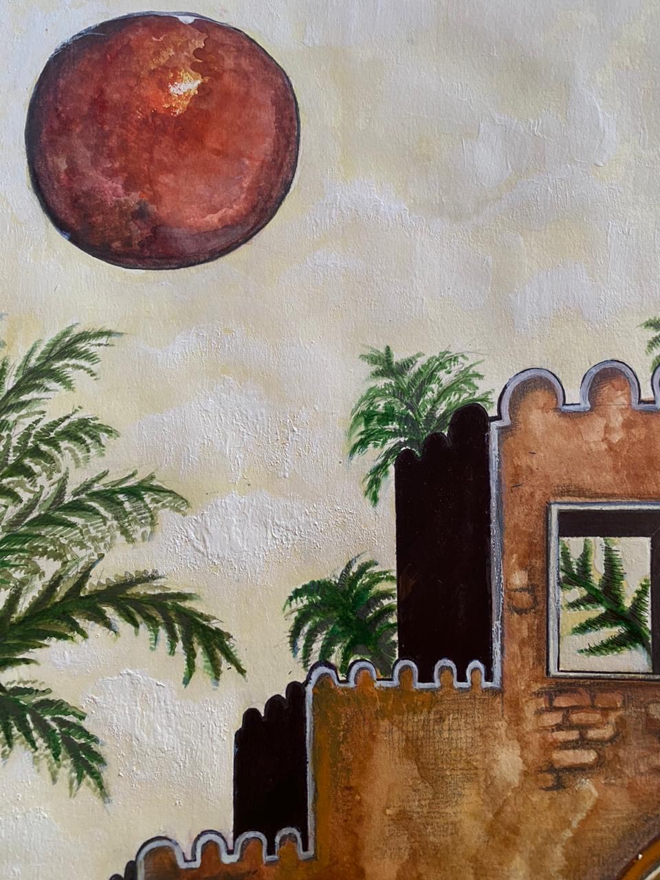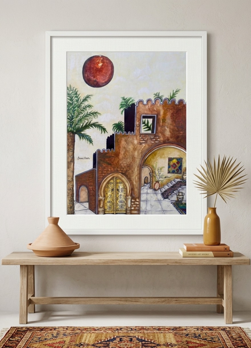 Whispers of the Old Style captures the quiet atmosphere of heritage architecture under the soft glow of moonlight. Traditional buildings, aged doors, and palm silhouettes come together in a composition that reflects warmth, memory, and cultural identity.